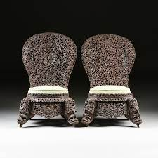 "BOMBAY BLACKWOOD" FILIGREE SLIPPER CHAIRS, 1850-1890,used by Anglos and ANGLO INDIAN